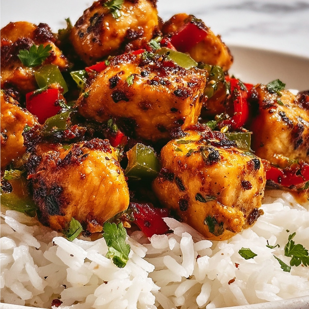 Though the dish is wonderful on its own, serving it over a bed of fluffy white rice turns it into a filling meal. If you want to brighten things up, steamed jasmine rice or even a light quinoa salad serve beautifully as accompaniments that balance the bold flavors of the chicken and peppers.