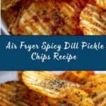 Crispy and flavorful Air Fryer Spicy Dill Pickle Chips made from thinly sliced russet potatoes marinated in pickle juice and seasoned with dill, garlic, and cayenne pepper. Perfect as a tangy snack or appetizer, these chips are air fried to golden perfection for a healthier crunchy treat.