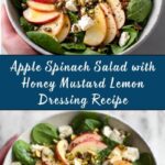 This Apple Spinach Salad with Honey Mustard Lemon Dressing is a fresh, vibrant dish combining crisp apples, tender baby spinach, tangy feta cheese, and toasted nuts, all tossed in a zesty and sweet honey mustard lemon dressing. Perfect as a light meal or a side, it’s quick to prepare and packed with flavors and nutrients for a healthy, delicious experience.