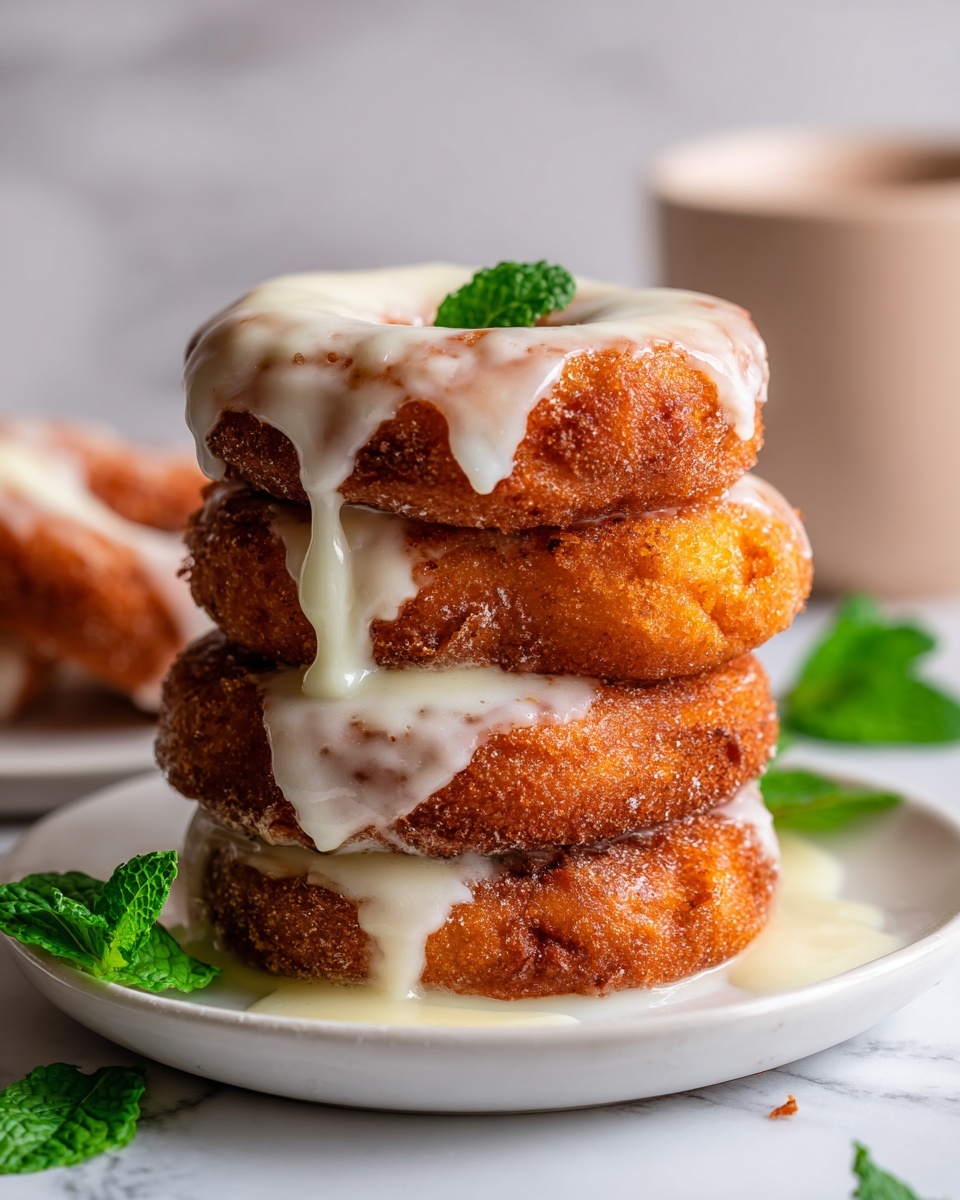 For the ultimate indulgence, serve the fritters while they’re still warm, either plain or with the glaze drizzled on top. These fritters are best enjoyed fresh when their fluffy, crisp textures and flavors are at their peak.