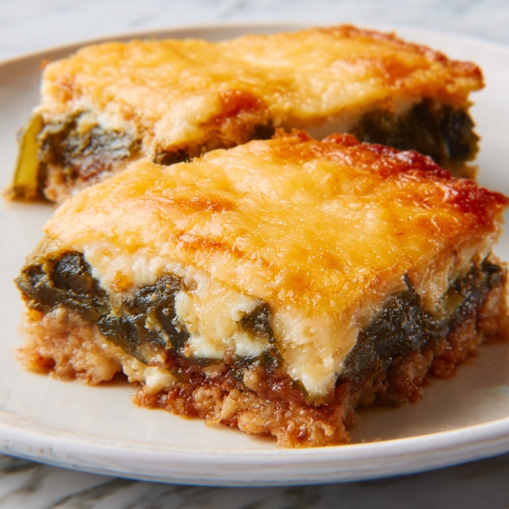Pour the egg batter evenly over the layered casserole, then place it in the oven uncovered. Bake for 40 to 45 minutes until the top is puffed, set in the center, and baked to a gorgeous light golden color. Let the casserole rest for 10 minutes before slicing to allow it to set up and make serving a breeze.