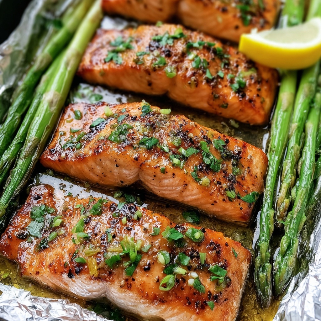 This Baked Salmon in Foil with Asparagus recipe is a quick, healthy, and flavorful meal perfect for busy weeknights. The salmon fillets and fresh asparagus are seasoned with garlic, lemon, and herbs, then baked in foil packets to lock in moisture and nutrients. The dish is simple to prepare, requires minimal cleanup, and yields tender, flaky salmon paired with perfectly cooked asparagus.