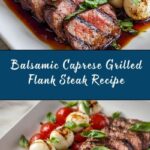 This Balsamic Caprese Grilled Flank Steak is a flavorful and elegant dish perfect for summer cookouts or a special weeknight dinner. Marinated in a tangy balsamic-vinegar and garlic mixture, then grilled to juicy perfection, the steak is topped with fresh cherry tomatoes, creamy mozzarella, and aromatic basil, delivering a delightful twist on classic Caprese flavors.