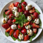 A fresh and vibrant Balsamic Strawberry Caprese salad featuring sweet strawberries, creamy mozzarella, aromatic basil, and a tangy balsamic glaze, perfect for a light appetizer or side dish in just 15 minutes.