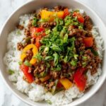 You can turn this Beef and Pepper Rice Bowl Recipe into a fun, interactive meal by serving it as a build-your-own bowl. Lay out the beef mixture, rice, assorted toppings, and garnishes in separate bowls so everyone can customize their own plate exactly how they like it. It’s a crowd-pleaser for family dinners or casual gatherings!