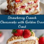 Berrylicious Strawberry Crunch Cheesecake offers a luscious blend of creamy cheesecake with a sweet golden Oreo crust and a delightful strawberry crunch topping made from freeze-dried strawberries and crushed Oreos. Finished with an optional strawberry glaze and fresh garnishes, this dessert is perfect for any occasion and satisfies all strawberry lovers with its perfect balance of flavors and textures.