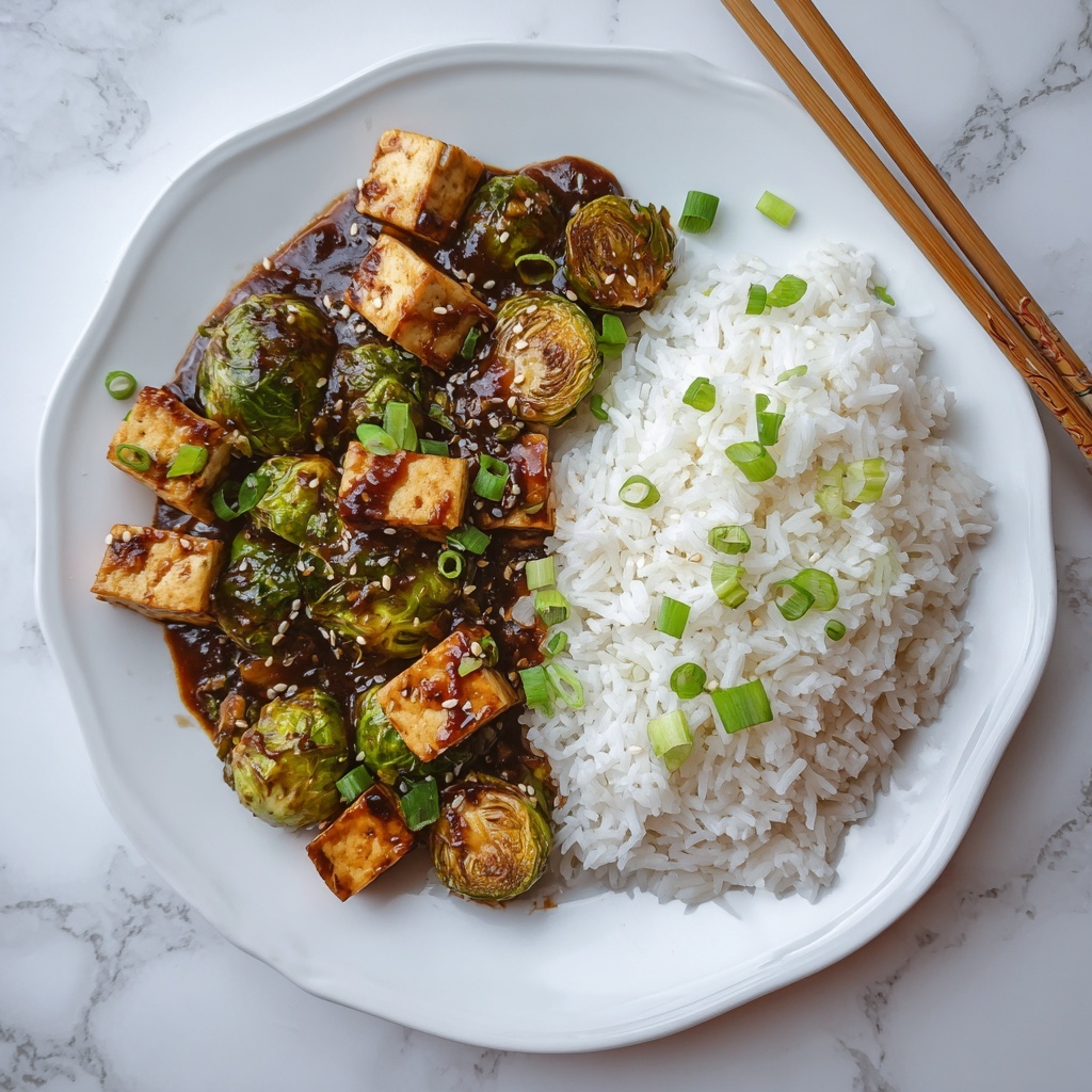 Once cooked, plate the chicken and Brussels sprouts immediately while hot and garnish with sliced green onions or a sprinkle of sesame seeds if desired. Those little toppings add an extra pop of flavor and a lovely presentation touch.