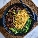 This Black Pepper Beef Noodles recipe features tender, marinated rump steak stir-fried with fresh Hokkien noodles and choy sum, all coated in a rich, glossy black pepper sauce. Perfect for a quick yet flavorful weeknight meal, it combines the bold flavors of soy, oyster sauce, and freshly cracked black pepper for a satisfying Asian-inspired dish.