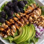 A refreshing and light Blackberry Chicken Salad made with tender cooked chicken breast, fresh blackberries, crisp celery, and a creamy dressing of mayonnaise, Greek yogurt, Dijon mustard, and lemon juice. Perfect for a nutritious and flavorful summer lunch or light dinner, this salad combines sweet, tangy, and savory flavors with a delightful texture.