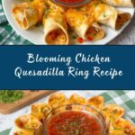 If you’re hosting a party, set the Blooming Chicken Quesadilla Ring Recipe on a colorful platter and surround it with small bowls of various salsas—mango, classic tomato, or spicy chipotle—and assorted dips. Offering different dipping options turns this dish into an interactive experience, inviting everyone to customize their bites and enjoy new flavor combinations with each serving.