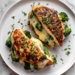 Slice the stuffed chicken breasts diagonally to showcase the colorful broccoli and cheddar filling—this makes for a stunning presentation that’s sure to impress guests. You could also place each stuffed breast on a bed of creamy mashed potatoes or cauliflower puree for an elegant touch.