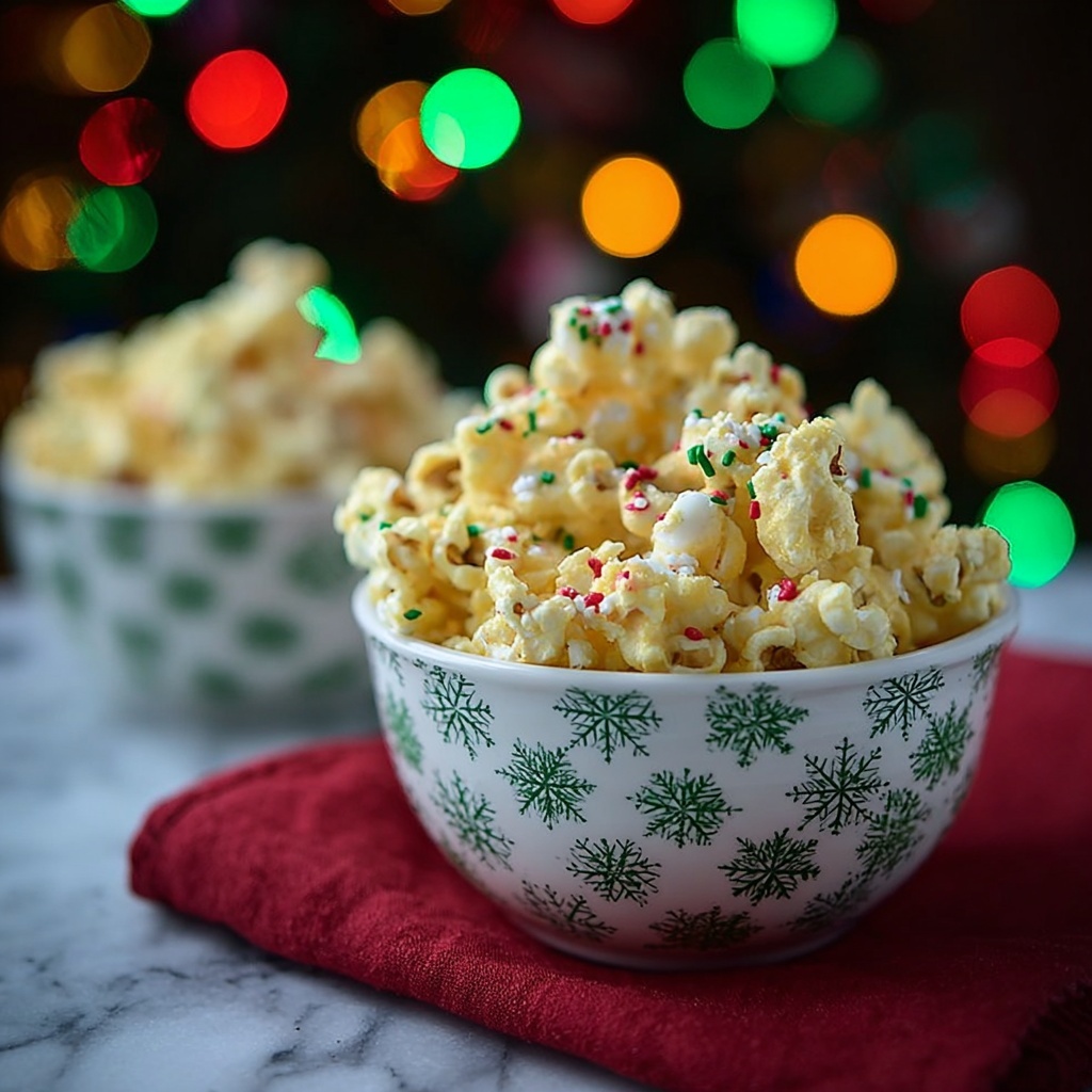Candied Puff Corn, also known as Christmas Crack, is a sweet and crunchy snack made by coating buttery puff corn with melted vanilla candy coating and topped with colorful sprinkles. This festive treat is quick to prepare, requiring minimal ingredients and perfect for holiday snacking or gifting.