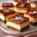 The caramel should be thick enough to coat the cheesecake nicely but not so heavy that it overwhelms the bars. Pour a generous layer—about 1/4 inch thick—and allow it to set firmly. This results in that perfect balance of creamy cheesecake and buttery caramel in every bite.