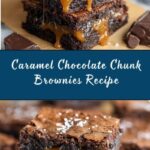 Delight in these rich and fudgy Caramel Chocolate Chunk Brownies, featuring a luscious layer of caramel sauce nestled between two layers of chocolatey brownie batter, studded with generous chocolate chunks and topped with a sprinkle of sea salt flakes for an irresistible sweet and salty treat.
