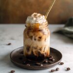 Pour the beautifully blended coffee mixture over the ice-filled glass. If you’re feeling extra indulgent, top it off with a generous swirl of whipped cream and an additional drizzle of caramel sauce. This gives the drink a luscious, inviting look and an extra pop of flavor.
