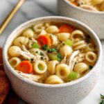 Pearl couscous adds a unique chewy texture and holds up well in the soup. Regular pasta or rice can be used, but keep in mind they might cook faster and absorb more liquid, so adjust cooking times and broth amounts accordingly.