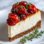 This savory cheesecake features a unique Parmesan crust paired with a creamy cheesecake filling infused with fresh thyme, topped with a luscious roasted tomato jam that adds a perfect balance of sweetness and acidity. A sophisticated appetizer perfect for entertaining or as a flavorful first course.