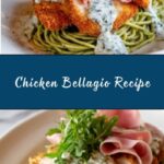 Chicken Bellagio is a delicious Italian-American dish featuring crispy breaded chicken breasts served over angel hair pasta tossed in a creamy Parmesan sauce, topped with fresh arugula and prosciutto slices. This hearty and flavorful meal combines crunchy textures with rich, silky sauce, making it perfect for a comforting dinner.