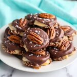 Delight in these homemade Chocolate Pecan Turtle Clusters featuring crunchy pecan halves, gooey caramel, and smooth melted chocolate, topped with a touch of flaky sea salt for a perfect balance of sweet and salty. These no-bake treats are quick to make, gluten-free, and ideal for holiday gifts or party snacks.