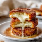 Indulge in this decadent Churro Stuffed French Toast with Cinnamon Sugar, featuring creamy cinnamon-vanilla cream cheese sandwiched between thick brioche slices, dipped in a cinnamon-infused custard, pan-fried to golden perfection, and dusted generously with cinnamon sugar for that classic churro flavor.