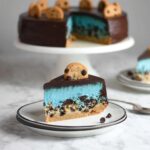 This Cookie Monster Cheesecake combines a rich chocolate chip cookie blondie base with a creamy, vibrant blue cookies and cream cheesecake layer. Topped with a luscious chocolate ganache and crunchy mini chocolate chip cookies, this decadent dessert is perfect for fans of classic cookie flavors in a fun, eye-catching treat.