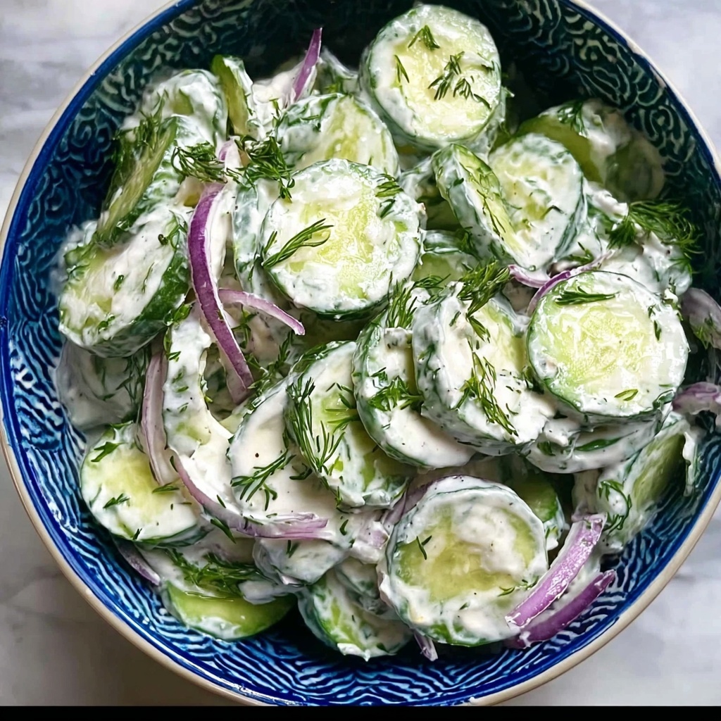 This Cool and Creamy Tzatziki Cucumber Salad is a refreshing and healthy dish perfect for warm days or as a light side. Crisp English cucumber and sharp red onion are coated in a luscious homemade tzatziki dressing made from Greek yogurt, fresh herbs, garlic, and lemon. The salad is quick to prepare, bursting with vibrant Mediterranean flavors, and can be served immediately or chilled for enhanced taste.