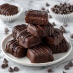 Working quickly, dip each frozen square into the melted dark chocolate, letting the excess drip off before placing them on a parchment-lined tray. Don’t rush—this step creates that delightful crunchy shell that contrasts the soft center.