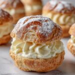 Delicious and classic French cream puffs featuring light and airy choux pastry filled with sweetened whipped cream. Perfect for an elegant dessert or special occasion treat.