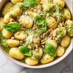 This creamy chicken pesto gnocchi recipe combines tender chicken thighs, golden pan-fried gnocchi, and a rich pesto cream sauce. With vibrant lemon notes and fresh basil, it’s an easy and flavorful dish perfect for a quick weeknight dinner or a comforting meal anytime.