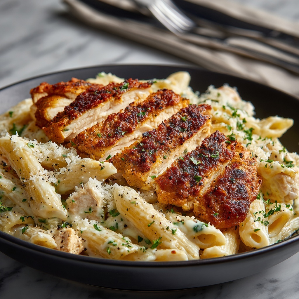 A rich and flavorful creamy garlic chicken pasta recipe that combines tender chicken breast with a luscious Parmesan cream sauce, perfectly tossed with pasta and fresh parsley for a comforting and satisfying meal ready in just 25 minutes.