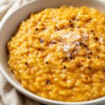 This Creamy Pumpkin Risotto is a comforting and savory Italian-inspired dish perfect for fall. Featuring tender arborio rice cooked slowly with pumpkin purée, garlic, onion, and aromatic herbs, this risotto delivers a velvety texture with a rich, earthy flavor. Finished with Parmesan cheese and butter, it makes a delicious main course or side dish that’s both satisfying and flavorful.