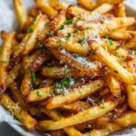 Once golden and crispy, carefully transfer the fries to a serving dish. Sprinkle with freshly chopped parsley for a bright, fresh touch. If you’re feeling indulgent, add a sprinkle of grated Parmesan cheese for a deliciously salty finish. These fries are best enjoyed fresh and hot, straight from the air fryer.