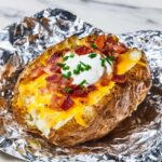 To reheat your Crock Pot Foil-Wrapped Potatoes Recipe leftovers, unwrap and microwave until warm or place in an oven preheated to 350°F (175°C) for about 15–20 minutes. Reheating in the oven keeps the skin nice and soft without drying out the flesh.