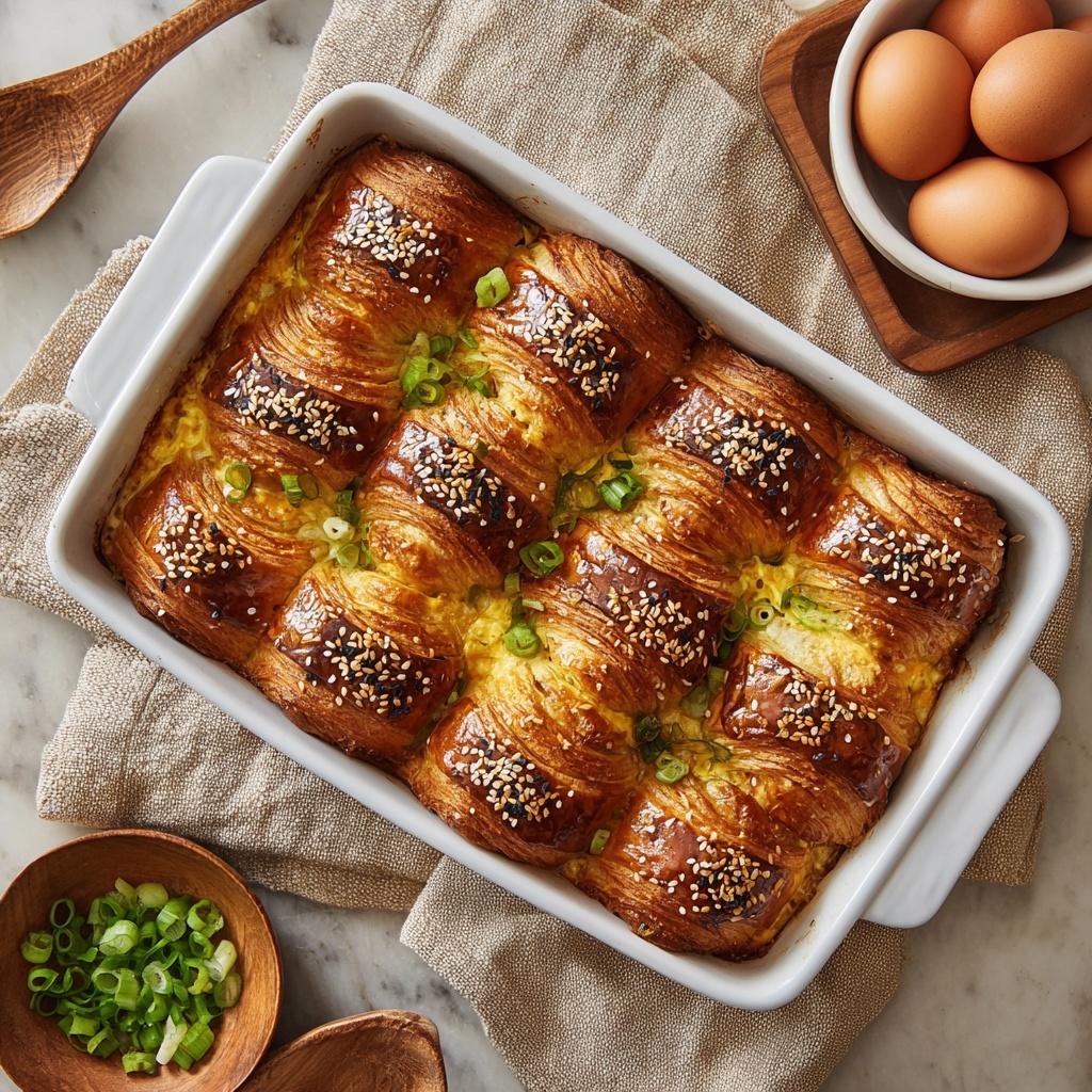 This Croissant Breakfast Casserole with Sausage, Cream Cheese, and Green Onions is a savory, comforting dish perfect for brunch or special breakfasts. It features flaky croissants layered with a creamy sausage and cream cheese filling, combined with eggs, cheddar, and a flavorful custard mixture. The casserole is baked until golden and bubbly, delivering a delicious blend of textures and tastes that will delight any crowd.
