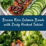 How to Serve Crunchy Brown Rice Salmon Bowls with Herbed Tahini Dressing Recipe
