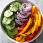 This refreshing Cucumber Sweet Pepper Salad combines crunchy cucumbers and a colorful mix of sweet bell peppers with a tangy, lightly sweetened dressing. Enhanced with fresh dill and a hint of honey, it makes a perfect healthy side dish or a light main course that’s quick to prepare and full of vibrant flavors.