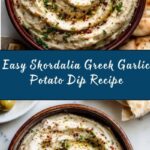 Easy Skordalia is a traditional Greek garlic dip made with creamy mashed potatoes, fresh garlic, and lemon juice, blended to a smooth, flavorful spread. Perfect as a tangy accompaniment to pita bread, fried fish, or roasted vegetables, this versatile dip offers a bright, garlicky punch with a silky texture.
