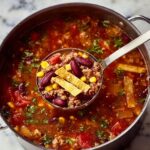 Once your soup is rich, fragrant, and perfectly cooked, ladle it into bowls and get ready for the best part — the toppings. Add shredded cheese, a dollop of sour cream, crispy tortilla chips, fresh cilantro, and green onions. Don’t forget a squeeze of lime for that zesty punch that brings everything together.
