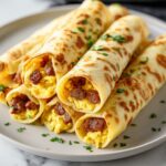 These Egg and Sausage Breakfast Taquitos Recipe creations love to be topped with fresh and zesty garnishes. Classic salsa adds brightness and a touch of heat, creamy guacamole balances with its smooth richness, while a dollop of sour cream lends a cool tang. Don’t forget a splash of your favorite hot sauce if you enjoy an extra kick!
