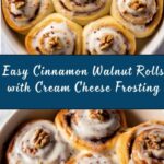 These Fluffy Cinnamon-Walnut Rolls are soft, aromatic, and generously filled with a cinnamon-sugar walnut mixture. Topped with a rich and creamy cream cheese frosting, they make a perfect warm breakfast treat or dessert. The dough is yeast-leavened to achieve light, airy rolls that melt in your mouth.