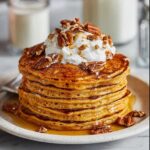Balance your fluffy pumpkin pancakes with sides that add texture and flavor—crispy turkey bacon, sautéed apples with cinnamon, or a simple fresh fruit salad really brighten the plate and give a satisfying contrast.