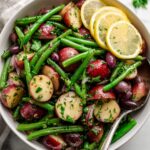 A refreshing French-style potato and green bean salad featuring tender baby potatoes and crisp green beans tossed in a tangy Dijon mustard vinaigrette, garnished with fresh herbs and capers. Perfect as a light side dish or picnic salad that’s gluten-free and vegetarian.