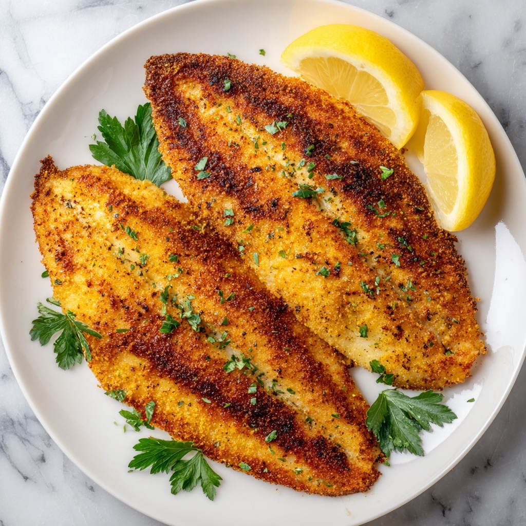 Fresh lemon wedges are a must-have when serving fried flounder, adding both color and acidity to brighten each bite. Sprinkle a little extra chopped parsley over the fish for an additional touch of green and freshness that looks wonderful on the plate.