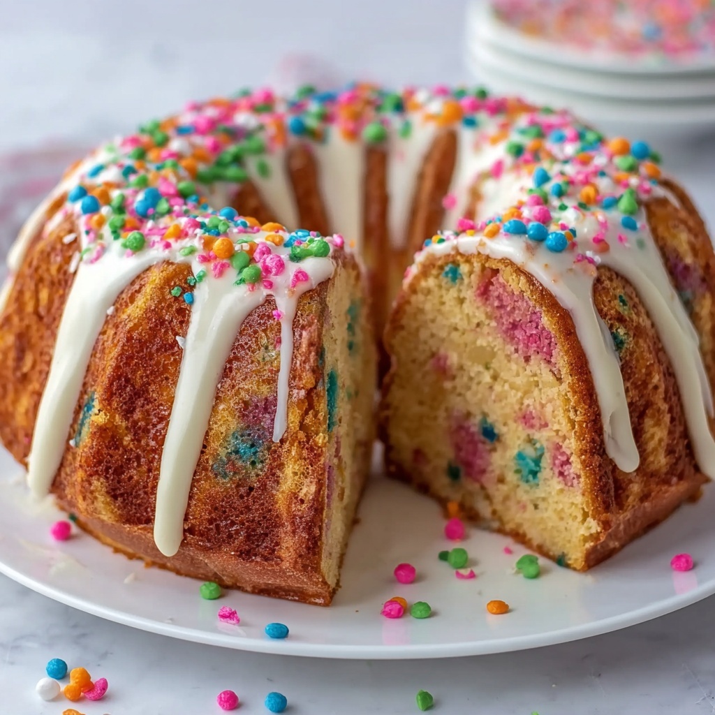 This Funfetti Bundt Cake is a delightful celebration treat bursting with colorful rainbow sprinkles baked into a moist, buttery vanilla cake. Perfect for parties or a fun dessert, this recipe yields a tender, flavorful cake with a classic bundt shape that’s sure to impress and bring joy to any occasion.