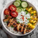 These Greek Chicken Tzatziki Bowls are a vibrant, healthy meal featuring marinated grilled chicken thighs served with a fresh cucumber and tomato salad dressed in a tangy vinaigrette and topped with creamy tzatziki sauce made from Greek yogurt and herbs. Ready in under 30 minutes, this dish is perfect for a light yet flavorful dinner that combines Mediterranean flavors with an easy-to-make bowl format.