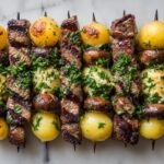 These Grilled Steak Potato Mushroom Kabobs combine tender marinated steak chunks, earthy mushrooms, and perfectly boiled small potatoes grilled to a juicy finish. Infused with a flavorful balsamic and herb marinade, these kabobs are ideal for a hearty and delicious outdoor meal, perfect for summer barbecues or any grilling occasion.