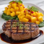 This recipe for Grilled Tuna Steaks with Mango Chutney offers a delicious and vibrant tropical meal that’s perfect for summer grilling. Tender tuna steaks are seasoned with a flavorful blend of lime, olive oil, smoked paprika, and optional cayenne pepper, then grilled to a perfect medium-rare. The dish is finished with a sweet and tangy mango chutney and fresh cilantro or parsley garnish, creating a harmonious balance of smoky, spicy, and fruity flavors.