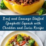 Ground Beef and Sausage Stuffed Spaghetti Squash with Cheddar and Swiss Recipe