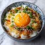 Gyeran Bap, a beloved Korean comfort dish, features fluffy white rice topped with perfectly cooked runny eggs, enhanced with the nuttiness of sesame oil and soy sauce. This quick and easy meal comes together in just 10 minutes, making it a perfect choice for breakfast, lunch, or a light dinner. Garnished with sesame seeds and fresh green onions, it offers a satisfying blend of textures and flavors that highlight the simplicity and warmth of Korean home cooking.