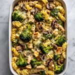 This healthier broccoli chicken casserole is a comforting and nutritious dish combining whole-wheat pasta, fresh broccoli florets, sautéed mushrooms, and tender chicken in a creamy, cheesy sauce. Baked to perfection with sharp cheddar cheese, it’s a balanced meal perfect for family dinners with added fiber and protein while keeping traditional indulgence in check.